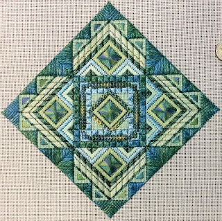to decide whether it should be a square or a diamond shaped design! While I designed and stitched it as a diamond, I took the appearance of it as square into consideration when I was choosing what to stitch where. I’d not done this before so it was a fun exercise – it’s good to stretch and try something new. It’s always amazing how turning or rotating a design gives it a different look.
