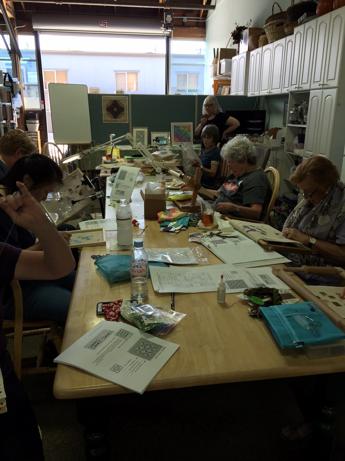 I taught Serenity the last two days and took a photo of class during the break! These are the “diehards” who won’t stop stitching long for a break! They were a delightful group of ladies – I usually take a group photo at the end of class but it is unseasonally warm for northern California right now so everyone was feeling a little wilted by the end of the day.