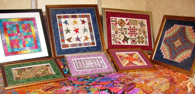 Since I released a Color Delights every month for about three years, I didn’t frame them but rather just put a mat on them. A few of them are lined up along the back of the couch and they looked good. When I first put them up, I lined them up in color order like the rainbow but they aren’t this way in the photo! They got picked up and moved around a lot. It’s fun to see how 3 or 4 go together in a grouping. My friend Dottie was nice enough to loan me her pillows of Amazing Color and Burst of Stars. We put my framed Burst of Stars in the middle of the couch and it’s interesting to see what a difference the two colorways are and how different a piece looks depending on whether it’s framed or made into a pillow.