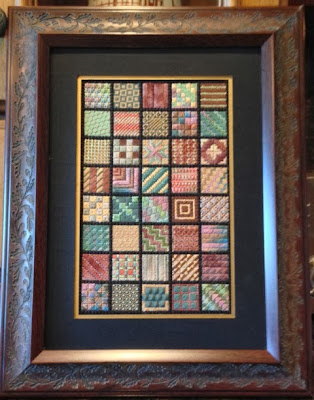 I’m leaving on a jet plane early in the morning and will land in Oakland tomorrow night (my time). I’m gaining two hours going so I’m thinking it will be good stitching time! Friday, I’ll be spending the day oogling threads at Needle in a Haystack and then giving a lecture on color. Saturday and Sunday I’ll be teaching two classes and am especially looking forward to meeting one of my online students who is coming from Canada. She sent me a photo of her framed “Inchies” and it’s fabulous! The framing and adding the black sashing makes it look very dramatic and elegant!