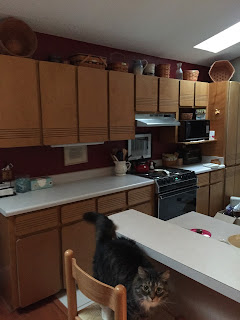 we lowered this hightop counter and Boots lost his barstools…but I have a lot more counter space.