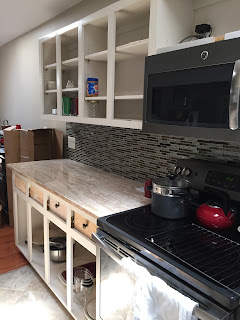 Here’s what I lived with for three weeks as my brother did the job and lives three hours from me…he’s a contractor so I’m fortunate to have a pro in the family. The wait was caused not so much by him as by waiting for the countertops to be installed. I managed without a stove and sink for three long weeks!