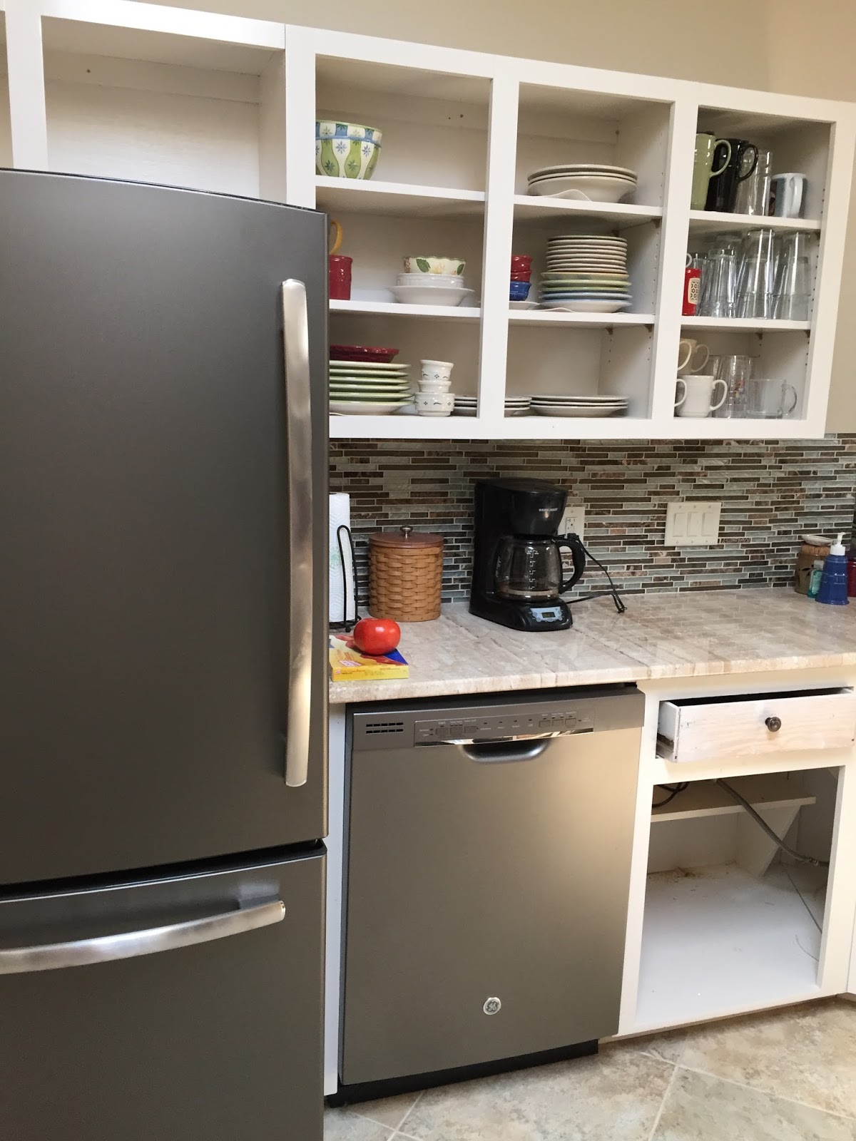 I then had appliances and counter tops but no cabinet doors for a couple of weeks which was fine because I finally had my new sink and appliances.