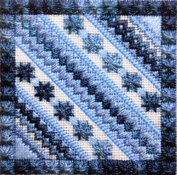 I’ll be releasing Color Delights – Sky at the Nashville show. This was a fun piece to stitch and I hope you like it! It’s #39 in the series – at 4×4 finished, they’re quick to stitch and great travel projects. Next on the agenda is Eggplant – it got the most votes a few weeks ago. Seafoam is already done as I had threads pulled but it won’t be released for a few months. Here’s a tiny peek as it’s mostly covered by the threads I was using!
