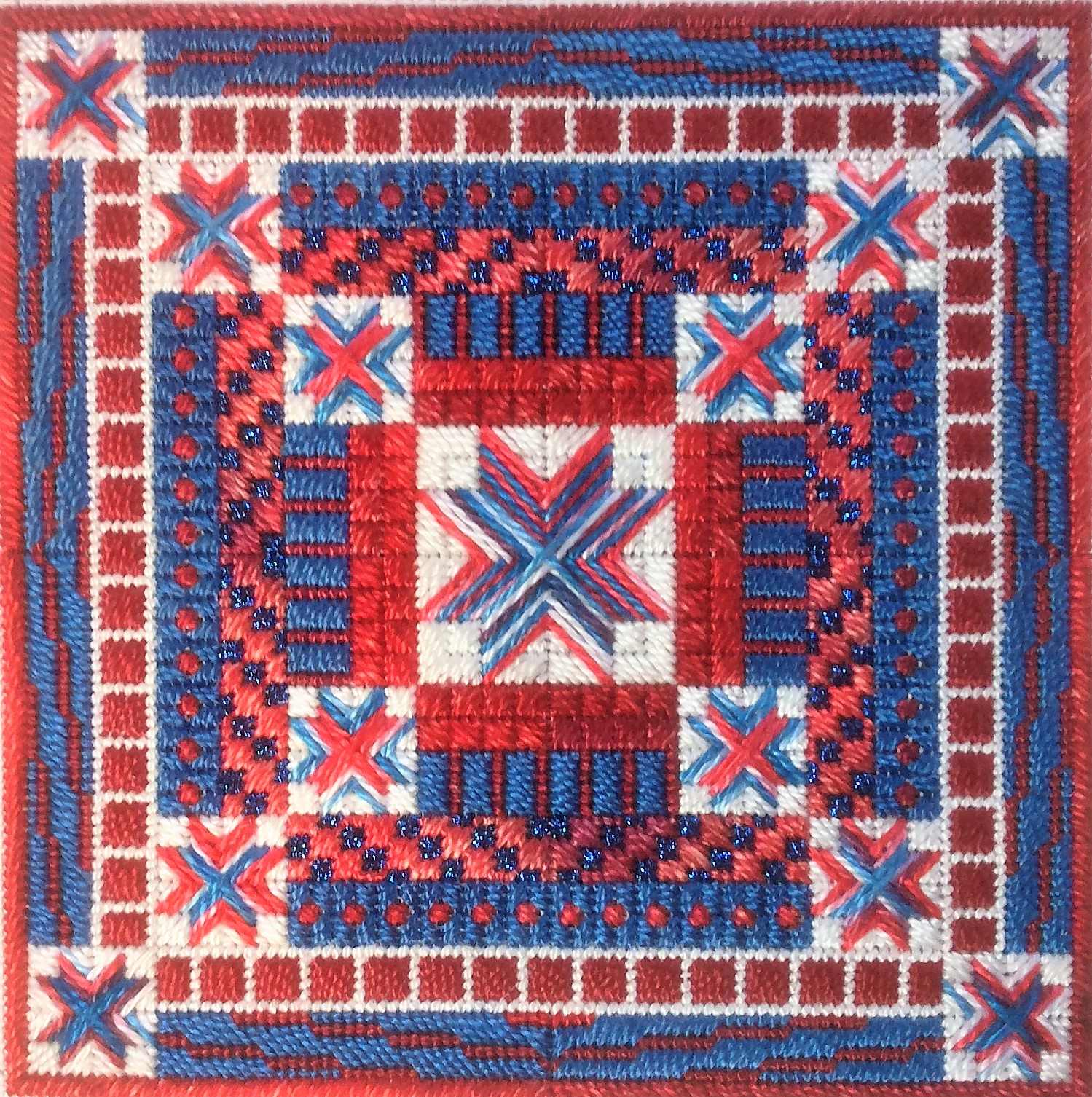 I’m introducing a new series of designs called Holiday Delights – these will be six by six finished size and great for box tops, pillow inserts, stand-up cubes, or whatever other creative things people are sure to come up with. The first is Independence Day. I’ve been on a roll with this fun combination of patriotic colors – they’re just such fun to work with and the ideas just keep coming! I’m excited about this new series and looking forward to working on the next one! Leave me a comment if you want to request a holiday for me!