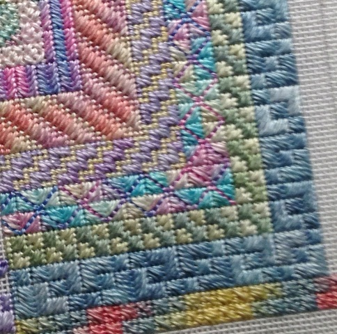 These are what I call “Multi Colors” – they are a great starting point for a lot of counted needlepoint patterns. From left to right, the names are Black Iris, Stained Glass, Trail Mix, Cypress, Calypso, and Parrot (can you say “Margaritaville”?!).