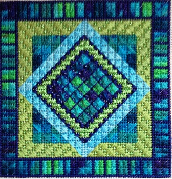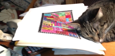 I went to the framer today and picked up the frames and mats for the pieces I’m releasing next weekend. I still have to stretch them and put the needlework into the frames but that’s a chore for tomorrow! I’m releasing Carnival (the third in the Rio Trio), Summer Logs (the one I’ve teased you with!), and Pandora’s Boxes. Here’s Carnival – stay tuned this week for previews of the rest.