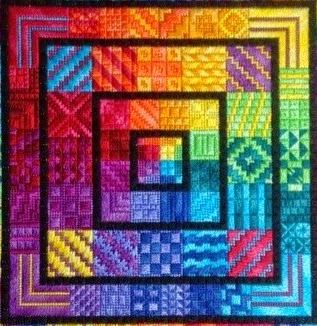 I also finished my latest colorful design and finally decided to call it “Around the Rainbow”. Here’s another sneak peek for you with another round – there’s one more after this but you’ll have to wait to see the whole thing! The overall design size came out ten inches square – I might have done one more round but I only had a piece of canvas 10×10. Yes, if you do the math, there’s only an inch left on each side so I’ll either be sewing some fabric on this to be able to frame it or I’ll have it made into a pillow. I haven’t decided yet.