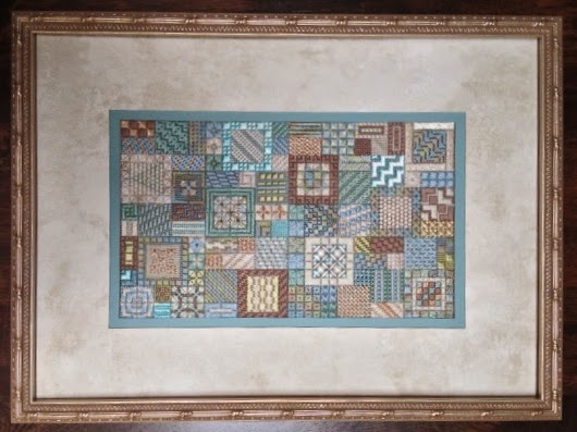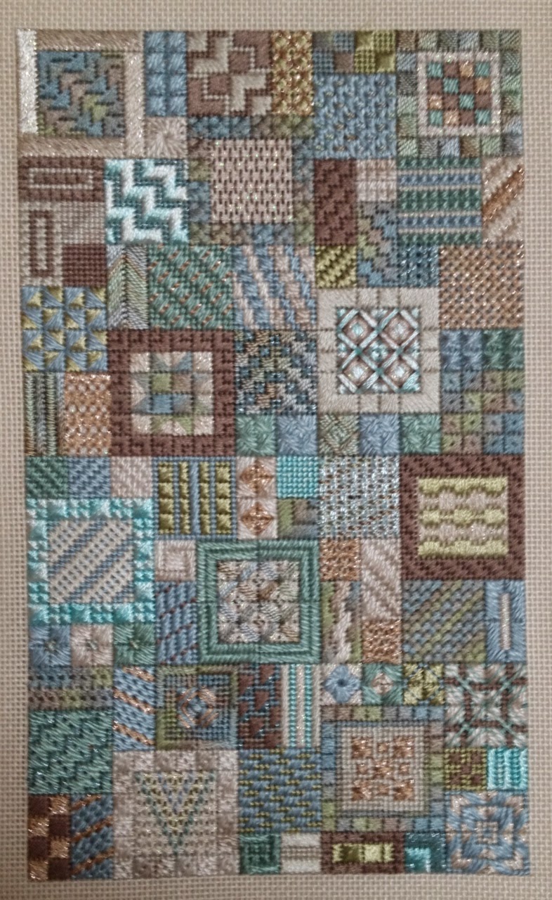 On a positive note (after my whining above), my Serenity design won a 2nd place ribbon in the exhibit at the Callaway Gardens Needle Arts seminar. I went up for a couple of days earlier this week to see the exhibit and shop in the boutique (wish I’d know I’d need that thread!). Serenity is a new teaching design and if you haven’t seen it, here it is – I haven’t got it up on my website yet. I designed it to be vertical but the picture of it framed below shows it horizontal – it’s interesting to see how the orientation makes it look different. It showed up this way when I added it to the blog so I decided to leave it instead of fixing it to demonstrate this phenomenon. It’s one of the fun things about geometrics – you can hang them however they most appeal to you or sometimes which way they’ll fit better on a wall or in a grouping.