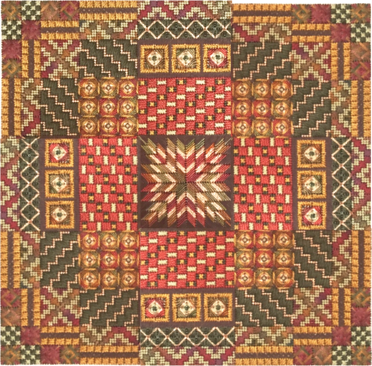 I came up with the Elements for a theme and designed and stitched Earth first – here it is…it also looks great on point. I’m using the same layout for all four of the designs so they will coordinate with each other in a grouping. I was so fired up (no pun intended) about these designs that I immediately did the Fire and Water designs. I only have Air left but needed a breather in between to work on something else new!
